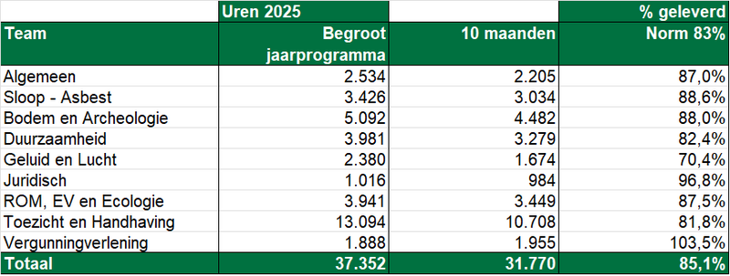 De grootste uitschieters zijn de slooptaken, bodem en archeologie en vergunningverlening. Bij deze vakgroepen gaat het vooral om vraag gestuurde producten. Op dit moment lijkt de realisatie aan het eind van 2025 op ongeveer 101% uit te komen.