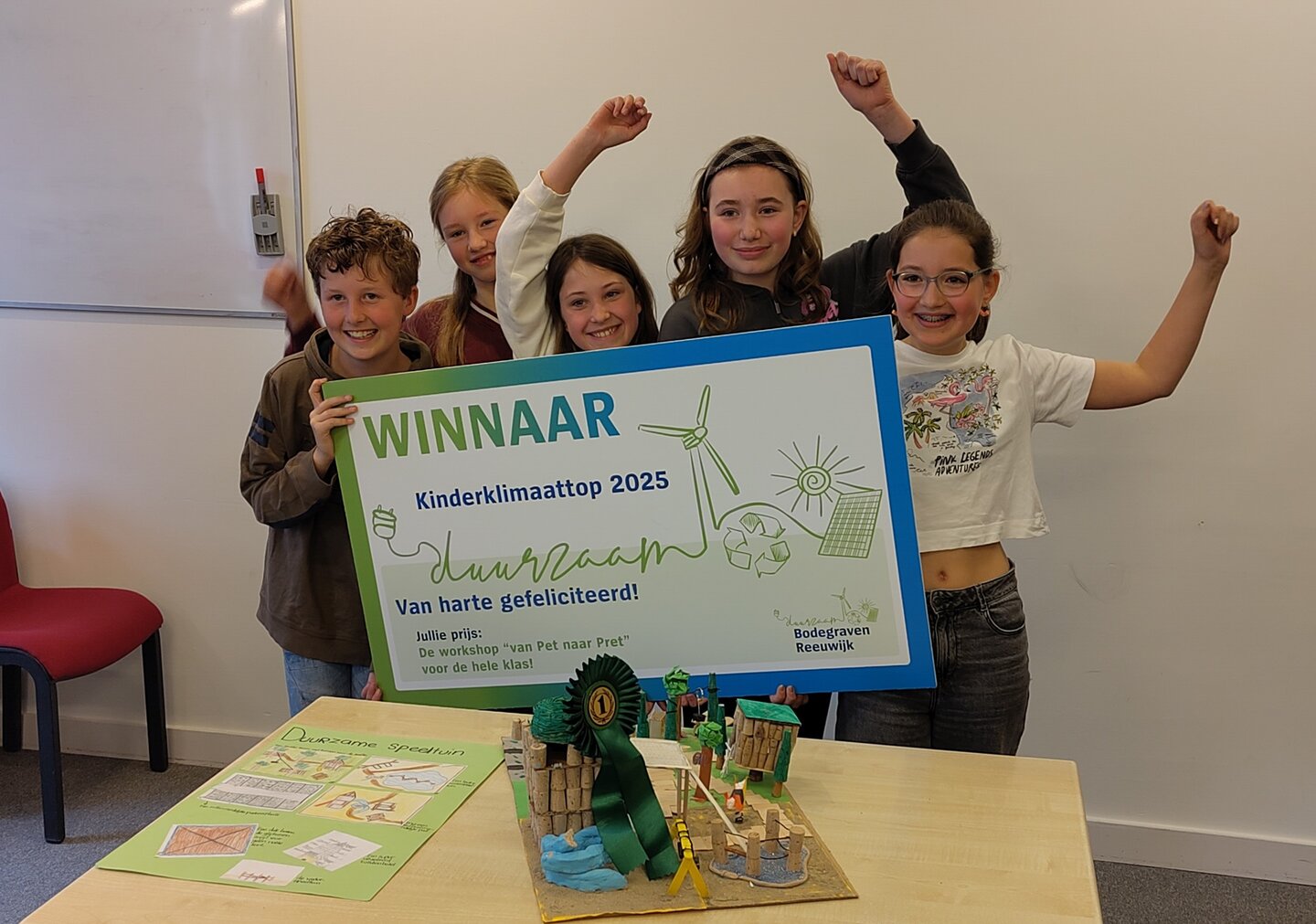 Op 27 maart was de afsluiting van de 7e ontwerpwedstrijd en kinderklimaattop van gemeente Bodegraven-Reeuwijk. Kinderen van vier basisscholen maakten in opdracht van de gemeente ontwerpen voor een speeltuin die zowel leuk als duurzaam is. Hiervoor kregen zij lessen over biodiversiteit, klimaatadaptatie en duurzaamheid van het Centrum voor Natuur- en Duurzaamheidseducatie de Zwanebloem. De deelnemende scholen waren de Speel en Werkhoeve, De Bron, de Da Costaschool en de Verhoeff-Rollmanschool.